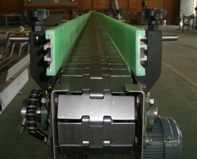 1、鏈板輸送機的輸送面平坦光滑,摩擦力小,物料在輸送線之間的過渡平穩,可輸送各類玻璃瓶、PET瓶、易拉罐等物料,也可輸送各類箱包。